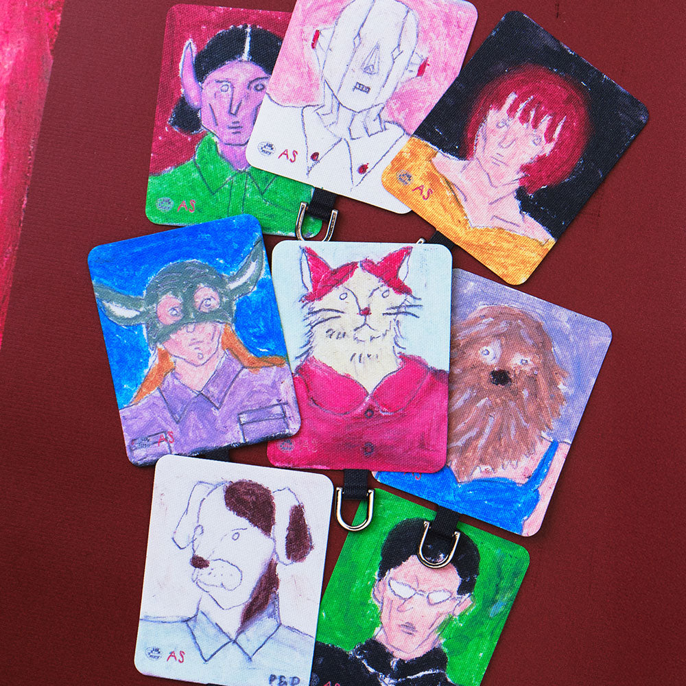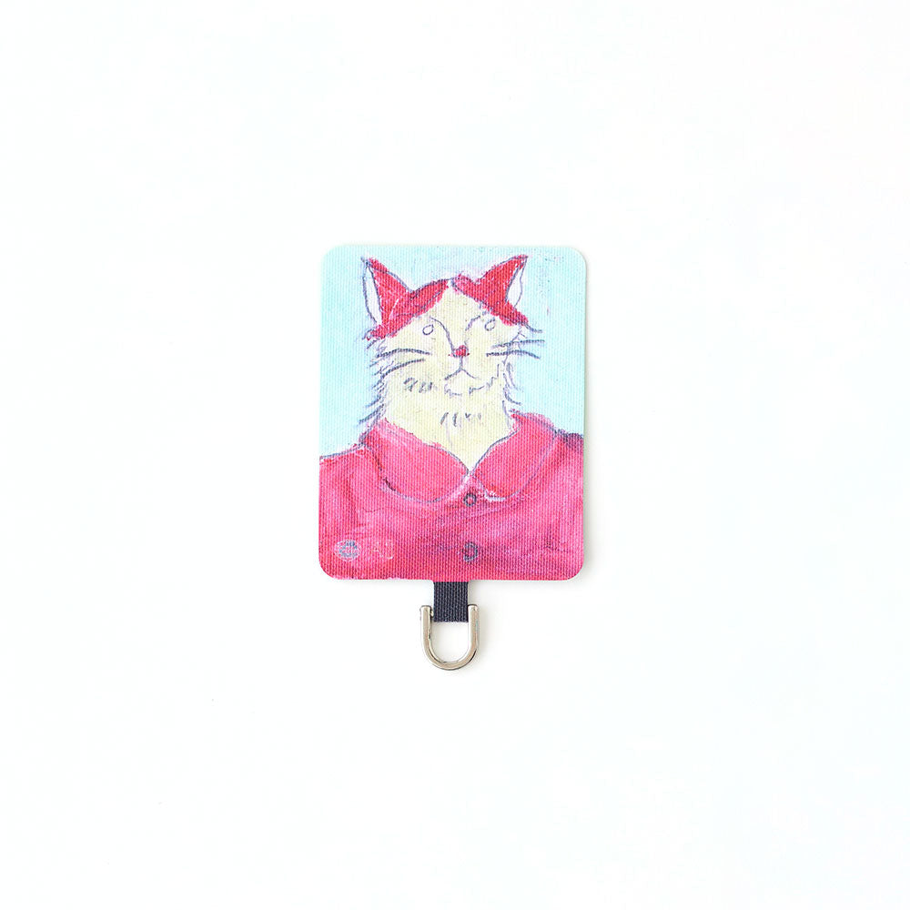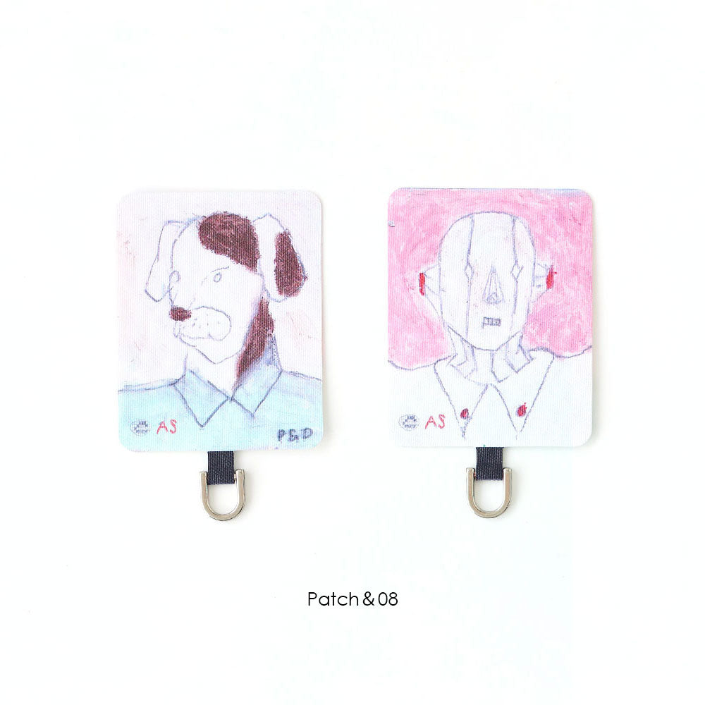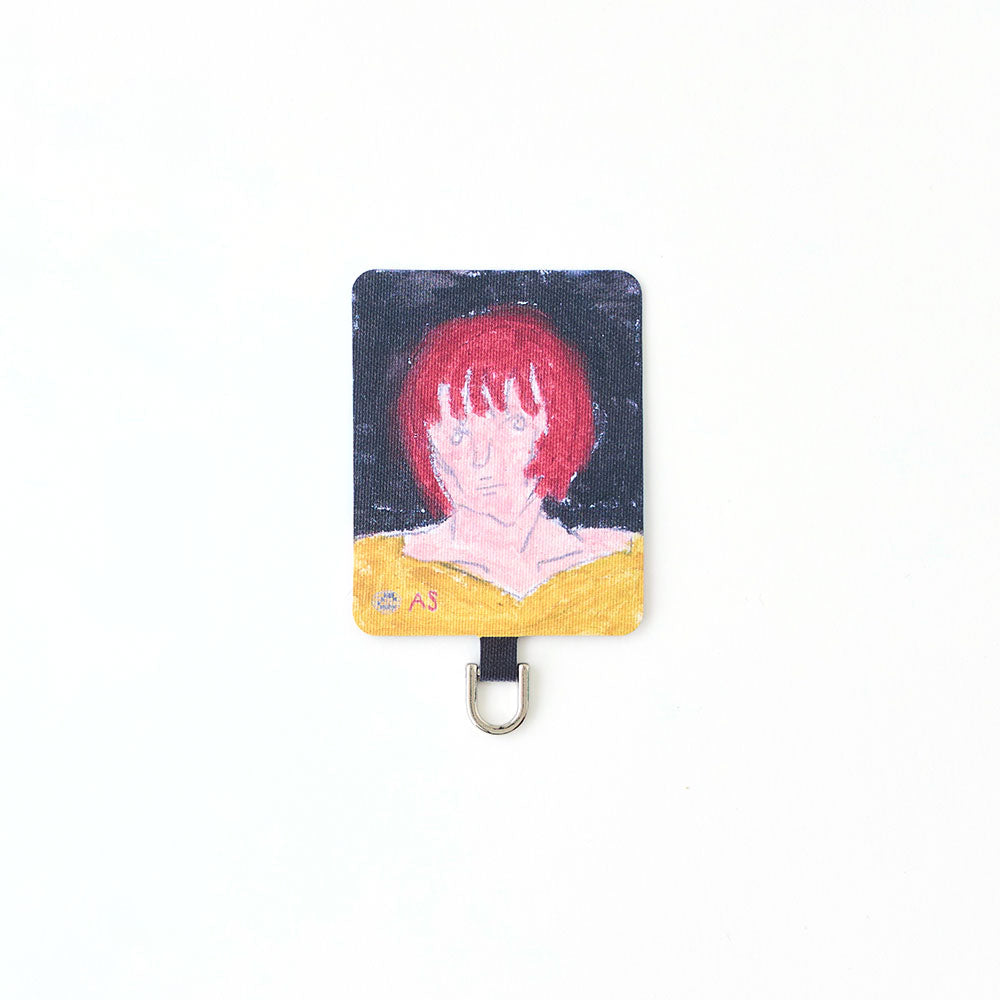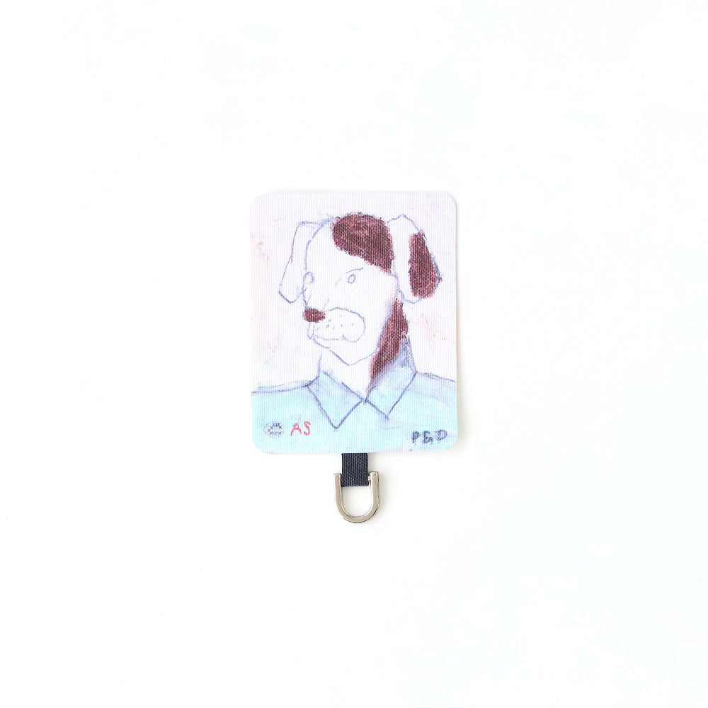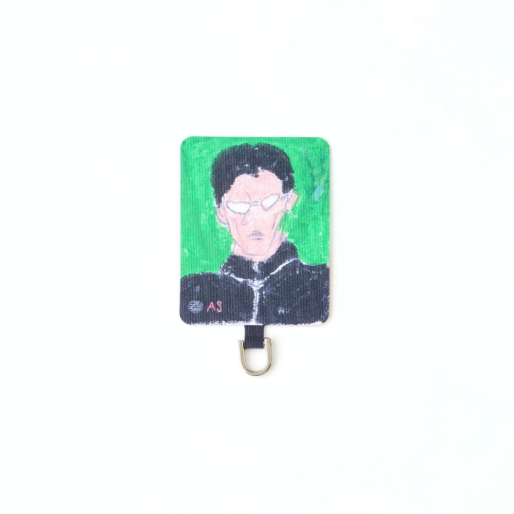 スマホケースに挟むだけで簡単に装着でき、ケース越しにユーモラスなアートが覗く遊び心あるデザイン。