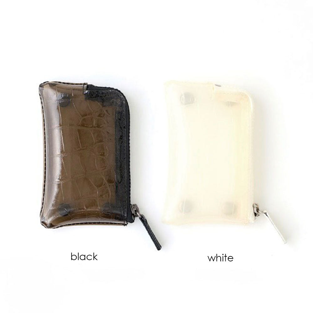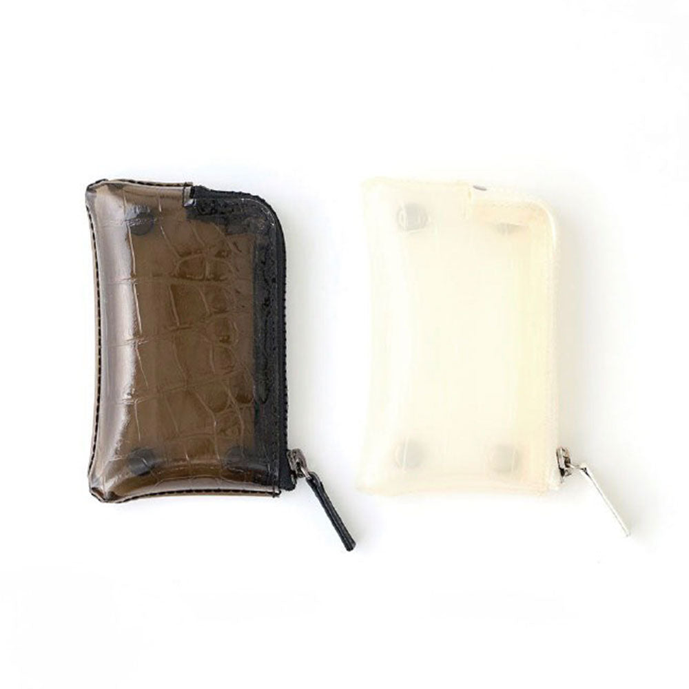 クロコ柄を型押しした程よく透け感あるリュクスな雰囲気のポケット。