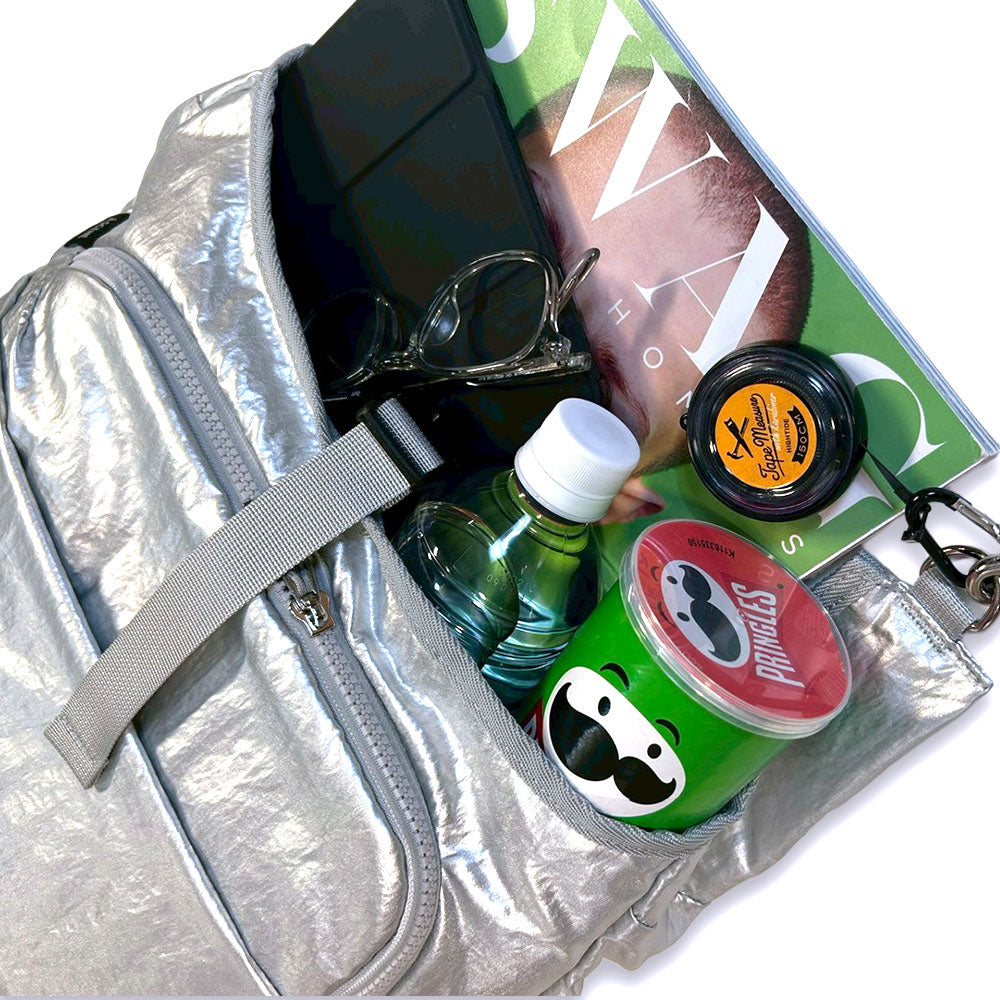 容量はフロントポケットや背面にもポケットを備え、使い勝手の良さも抜群。長さ調節が可能なショルダーストラップは、肩掛けにも斜め掛けにも対応。さらに取り外し可能なので、Design paracord strapとの組み合わせもお楽しみいただけます。