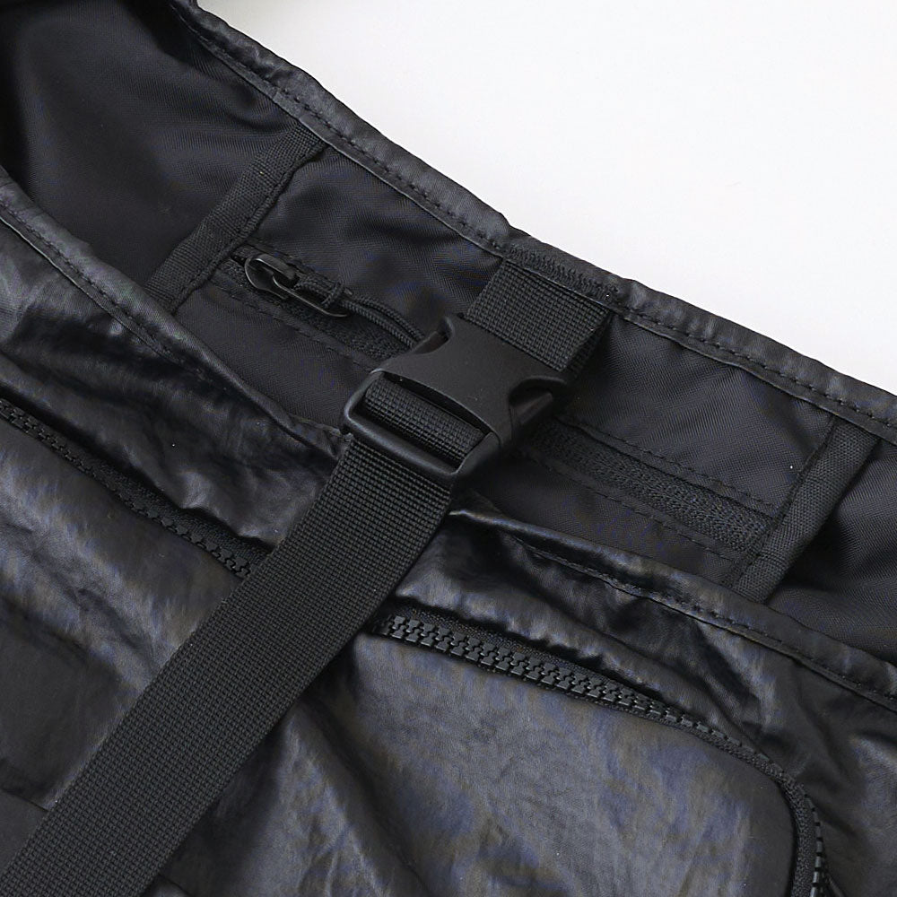 容量はフロントポケットや背面にもポケットを備え、使い勝手の良さも抜群。長さ調節が可能なショルダーストラップは、肩掛けにも斜め掛けにも対応。さらに取り外し可能なので、Design paracord shoulderとの組み合わせもお楽しみいただけます。