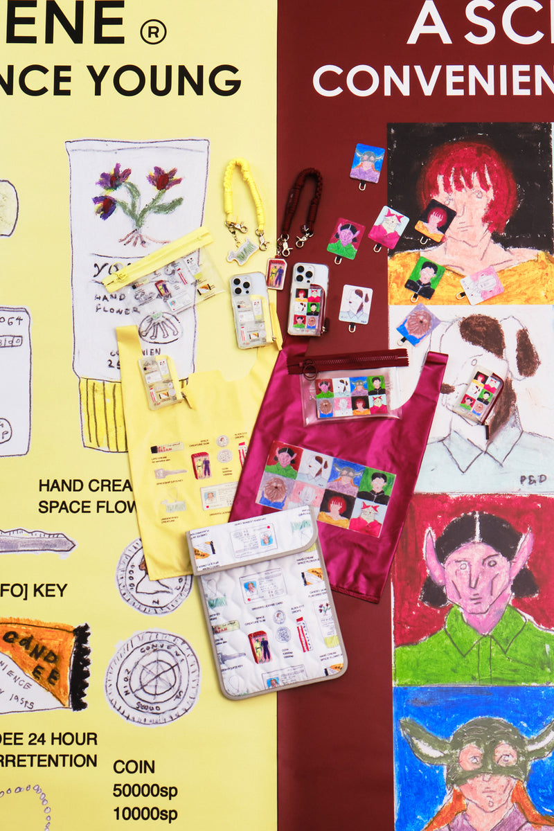 スマホケースは、PVCポケット全面に「CONVENIENCE YOUNG」のグラフィックをを大胆にプリント。持つだけで視線を引き寄せる、インパクトあるデザインに仕上げました。